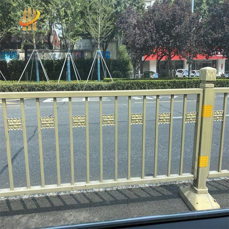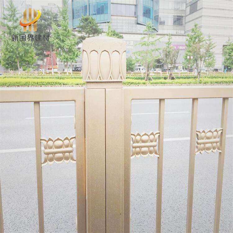 黃金色道路護(hù)欄、市政蓮花非機(jī)動(dòng)車隔離欄、鋅鋼防護(hù)欄桿