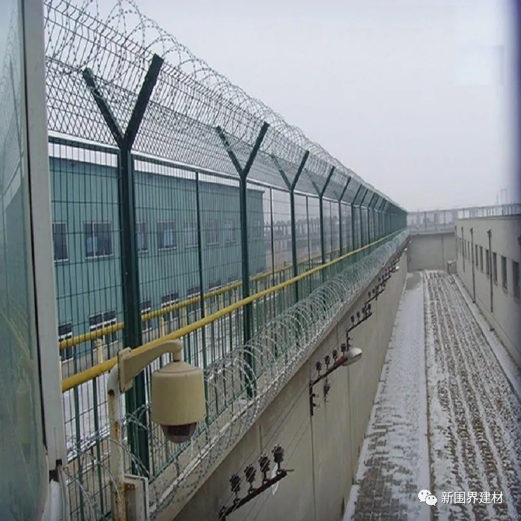 監獄加高鋼網墻又稱作"Y型安詳防護護網"和機場護欄網通用,是由V型支架立柱,增強型焊接片網,安全防盜網連件和熱鍍鋅刀片刺籠構成強度和安全防護性級別很高。連年來,被遍及應用在牢獄,軍事基地等高安全場合。