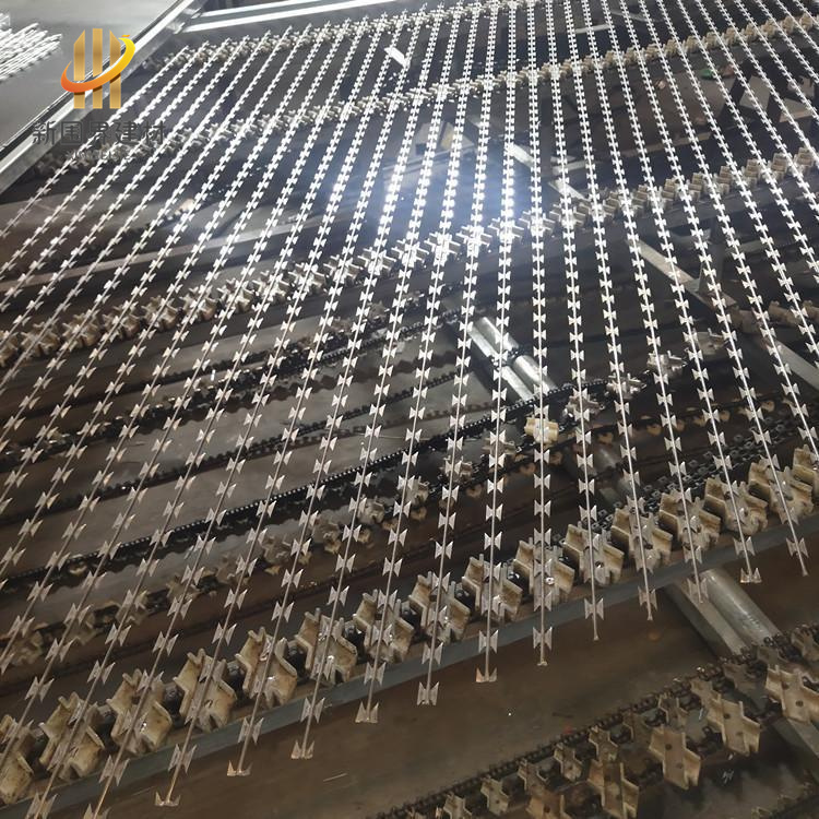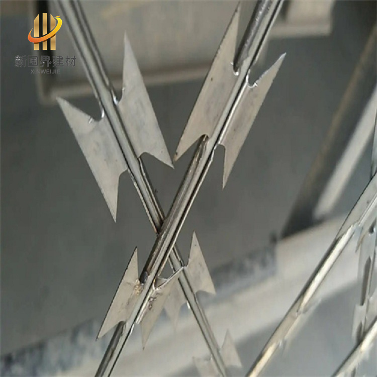 焊接刀片刺網絲線材質:采用優質的——熱鍍鋅高碳鋼絲、熱鍍鋅中碳鋼絲、不銹鋼板線等等。