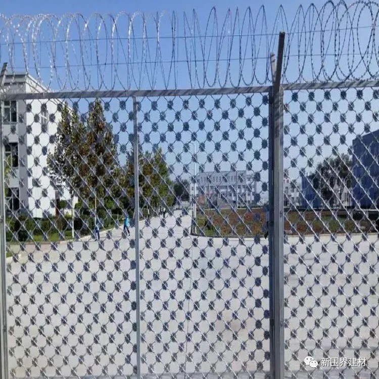刀刺是由不銹鋼板或鍍鋅板沖壓出尖銳的菱形刀片,再配合高強度的優質碳鋼絲,在其外觀上給與震懾,達到防翻越的目的。