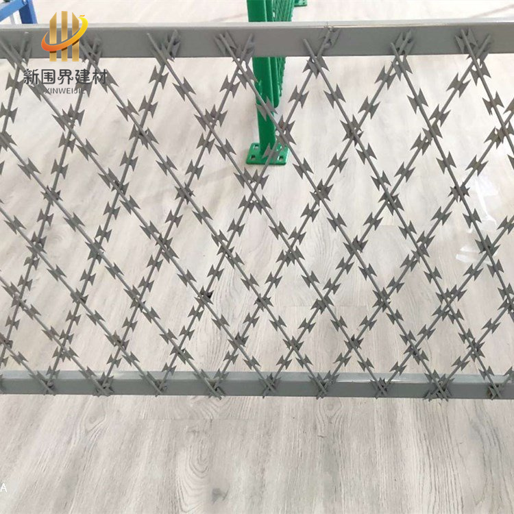 菱形孔焊接刀片刺網、焊接鐵絲網隔離柵、焊接型刀片刺網墻