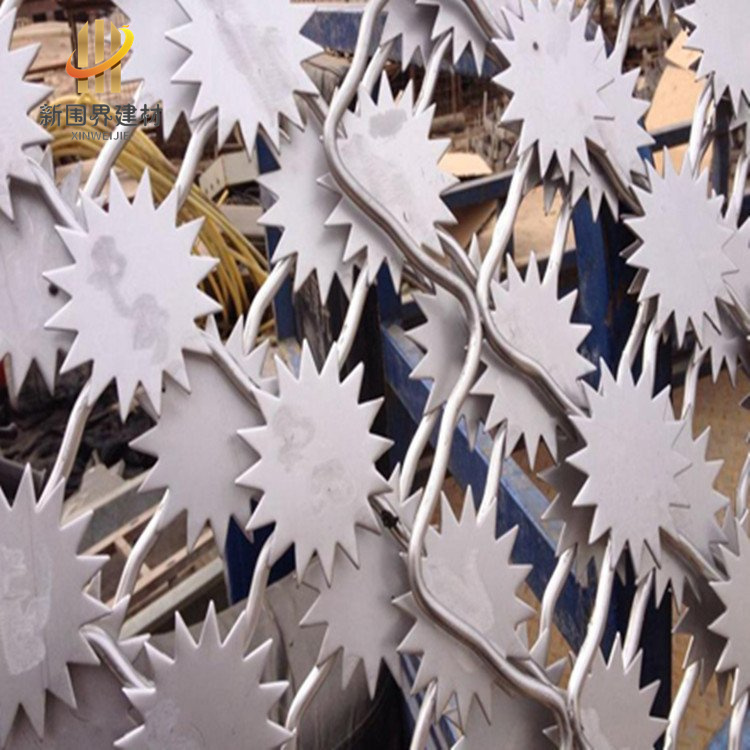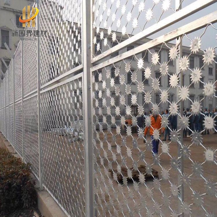 太陽(yáng)花美格網(wǎng)監(jiān)獄護(hù)欄網(wǎng)、梅花刺片鐵絲網(wǎng)、監(jiān)獄圍墻防攀爬刺網(wǎng)