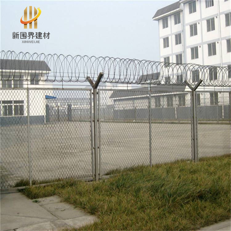 用途:在內(nèi)距離獄墻3-5m處設(shè)置防攀越式隔離網(wǎng)和警戒標(biāo)志,防止罪犯接近獄墻;采用立式Y式型柱、鋼絲網(wǎng)加蛇腹型刀刺網(wǎng)。