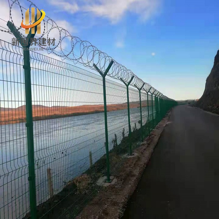 Y型柱隔離網的組成,這種根立柱一般是由方管加上頂部V字型焊接而成,少部分選用圓柱的。方柱一般是60x60mmx3mm ,與護欄網片通過緊固件連接起來,這種隔離網的安裝幾乎不受任何地形的任何影響,可以預埋或者是通過法蘭盤與水泥地面固定。而護欄頂部可以通過Y型柱配有刀片刺繩或者普通刺繩,進一步起到防護作用 產品。定制熱線:18033766898