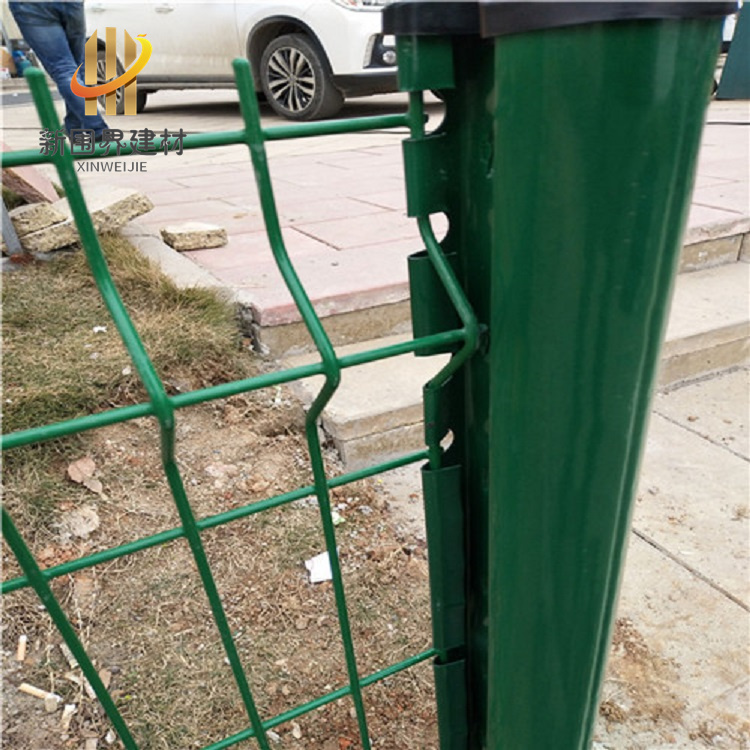 桃型立柱護欄網多是由桃形立柱和三角折彎護欄網組合,網片絲徑3.5~8mm 網孔多為長方形:常用7.5*15cm 網片高度1,。8m~~2.5m,長度多為3m,立柱尺寸:常用5cm*7cm 7cm*10cm 厚度1mm ,表面多浸塑處理,顏色:立柱和網片多用不同顏色,如黃色,藍色,白色,紅色等 兩兩組合,更顯美觀。