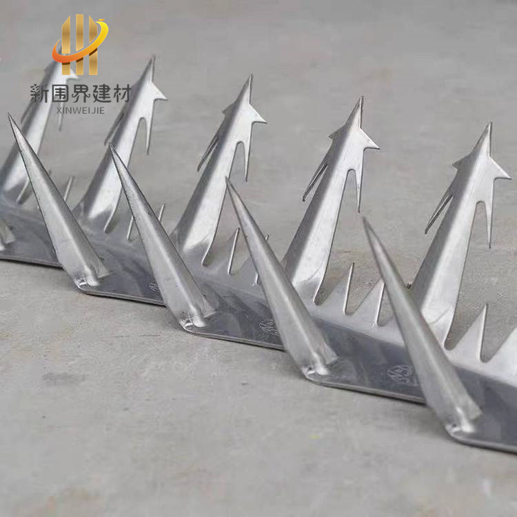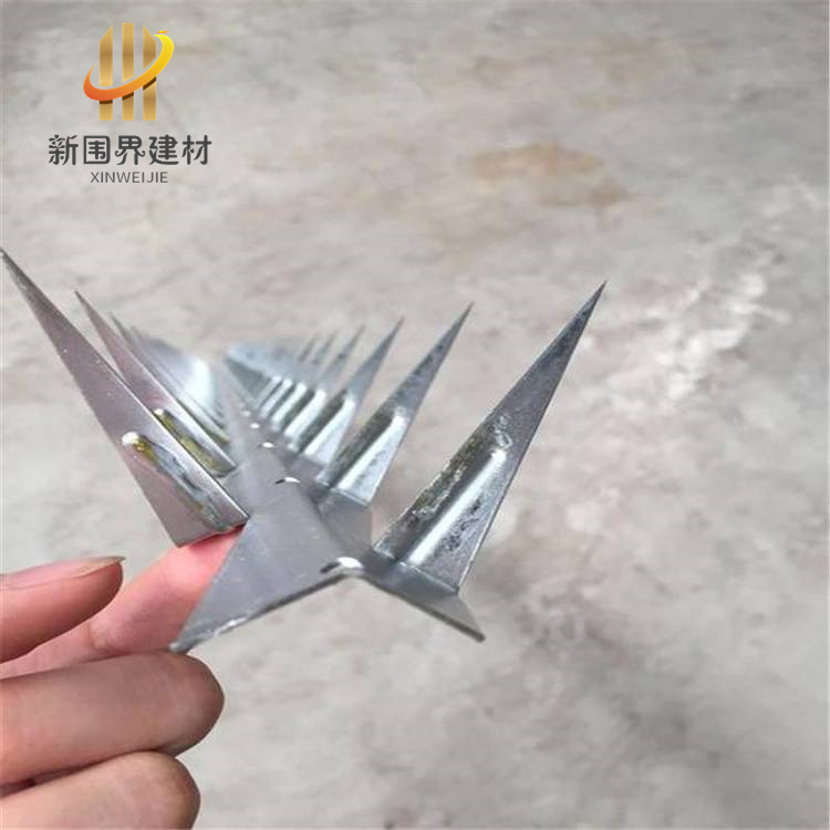 刺釘具有結(jié)構(gòu)簡(jiǎn)單、防盜效果好、美化、成本低、便于普及的優(yōu)點(diǎn)。刺釘?shù)牟馁|(zhì)采用鍍鋅鋼板、不銹鋼板、鍍鋅+彩色PE噴涂,刺釘主要使用膨脹螺絲固定在圍墻,屋頂或者金屬護(hù)欄上,最好將防爬刺釘安裝高度在2米及2米以上。