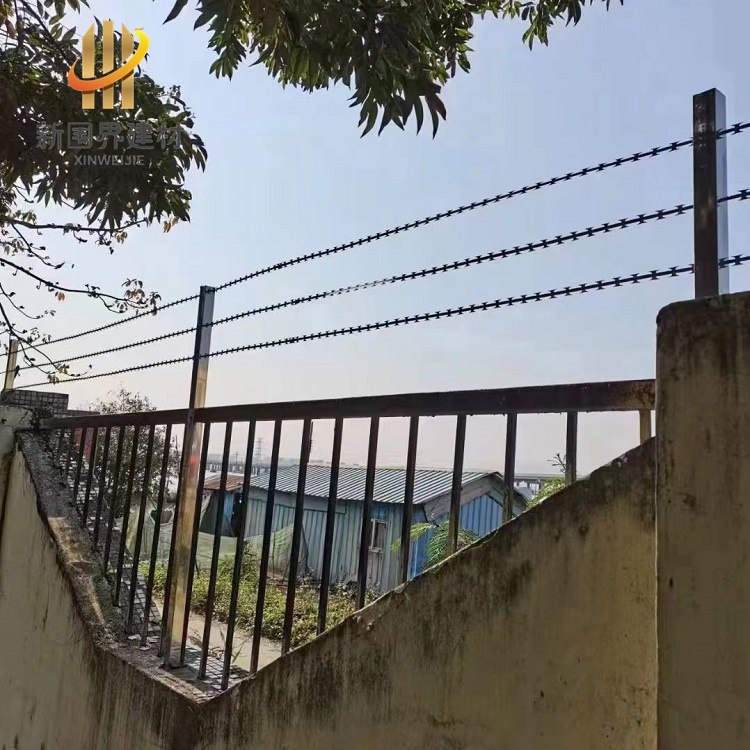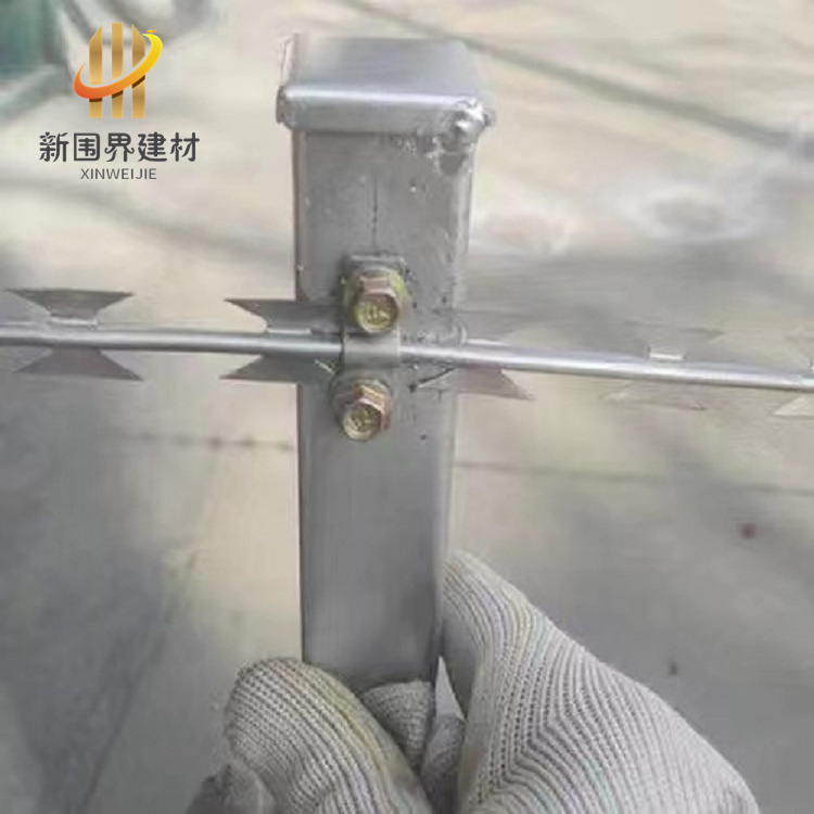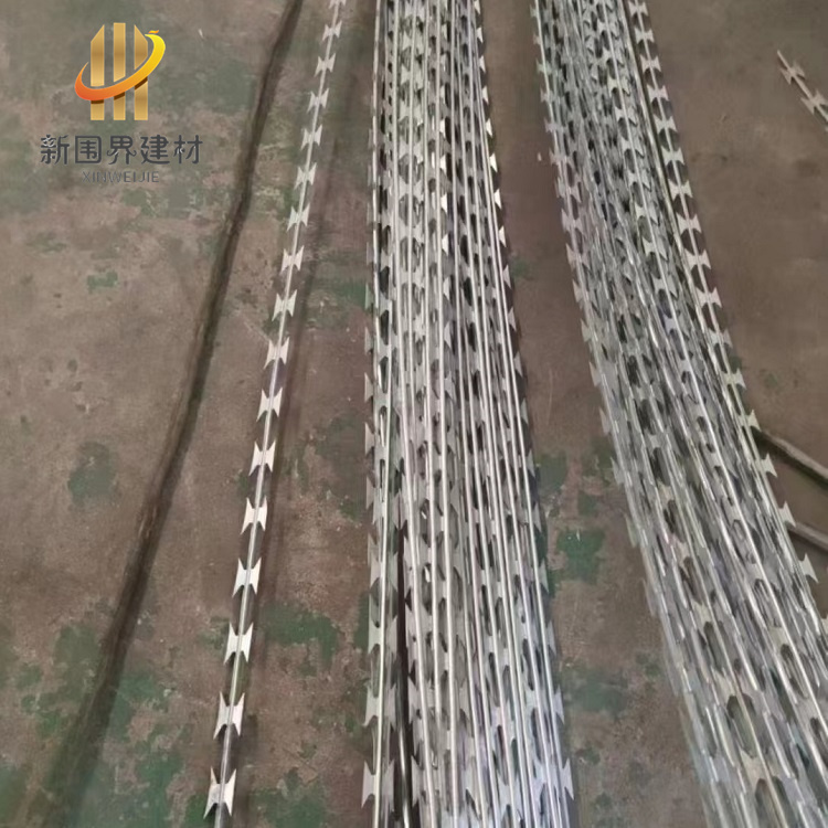 直線式刀片刺網(wǎng)是由刀片刺繩直條焊接而成,是根據(jù)電焊網(wǎng)片改進(jìn)而成,主要功能是防盜、防爬攀以及隔離的作用。刀片刺繩芯線上帶有鋒利的刀片,手不能握,防護(hù)性能非常好。