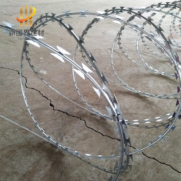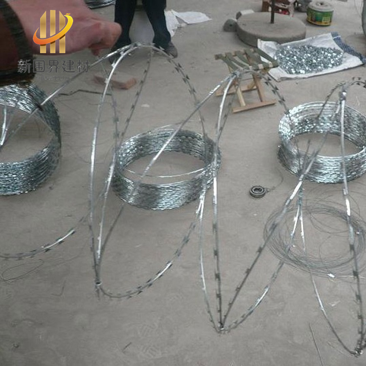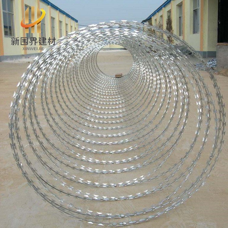 刀片刺繩也稱為刀片刺絲、刀片刺網,是一種新型防護網。刀片刺繩具有美觀、經濟實用、防阻效果好、施工便利等優異特點,刀片刺繩被廣泛應用于許多國家的工礦企業、園林公寓、邊防哨所、軍事領域、監獄、看守所、政府建筑物和其他國家的安全設施。