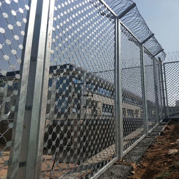 梅花刺片隔離網(wǎng)又叫雪花刺片鋼網(wǎng)墻、監(jiān)獄防攀爬鋼網(wǎng)墻、監(jiān)獄護(hù)欄網(wǎng)或監(jiān)獄隔離柵等。可以有效防止犯人逃跑!為了防止囚犯逃離監(jiān)獄,根據(jù)的要求,要加強(qiáng)監(jiān)獄的預(yù)防工作,增加鋼網(wǎng)和帶刺鐵絲網(wǎng),以保護(hù)監(jiān)獄周圍的墻壁,梅花刺片隔離網(wǎng)這款隔離網(wǎng)產(chǎn)品就是專為監(jiān)獄隔離而研發(fā)的。