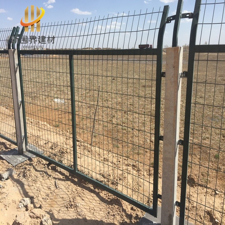 金屬網片及柵欄門的網片成形后應整體鍍鋅并進行熱浸塑(或噴塑)處理,鍍鋅量270g/m2,浸塑厚度0.8mm~1.2mm,顏色選用墨綠色。