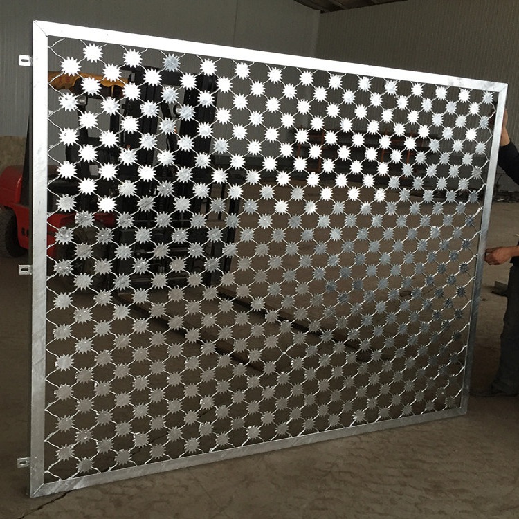 監(jiān)獄梅花刺網(wǎng)用途:主要用在監(jiān)獄隔離網(wǎng)、監(jiān)獄大門、機場圍界、軍事設(shè)施、電力配電站、邊防線、邊防哨所的高安全圍網(wǎng)。還可用于廠區(qū)、倉庫隔離網(wǎng)、交通、通信站、垃圾場、小區(qū)防護、學(xué)校、工廠、農(nóng)場等地的圈禁防護。