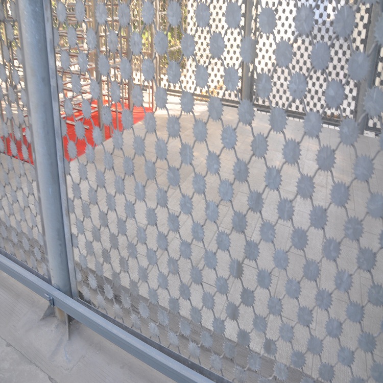 監(jiān)獄梅花刺網(wǎng)材質(zhì):一般為不銹鋼材料,也有的采用熱鍍鋅、后熱鍍鋅或者浸塑防腐處理。