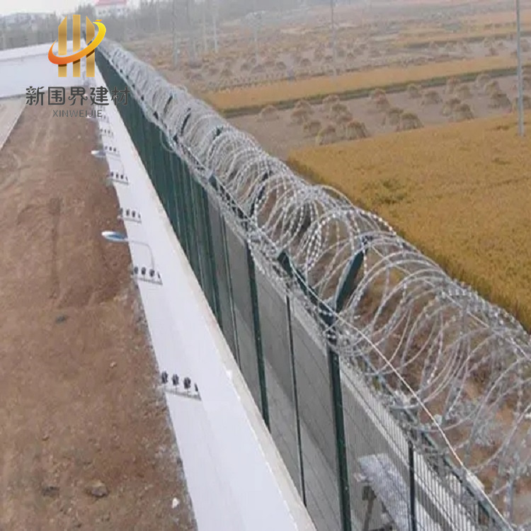 是由V型支架立柱,焊接網(wǎng)片,安全防盜連接件和刀片刺繩組成。其強度和安全防御性級別很高。其產(chǎn)品造型美觀、花色多樣,既起到圍欄作用,又起到美化作用。由于具有安全性高、防攀爬能力好。焊接刀刺網(wǎng)可平地安裝,也可在圍墻上二次安裝,有效防止攀逃。