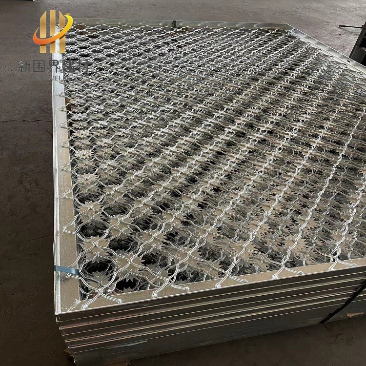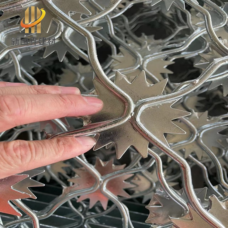 梅花刺片隔離網,是將梅花形刺片焊接在美格網的節點上,形成刺形保護,美觀大方、防攀爬能力很強。現在很多監獄、看守所、監區人行通道、車型通道、AB大門都會選擇梅花刺片隔離網作為防攀爬金屬封閉墻。還可以用于軍事設施、電力配電站、邊防線、邊防哨所的高安全圍網。