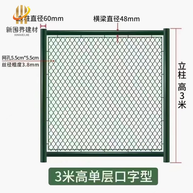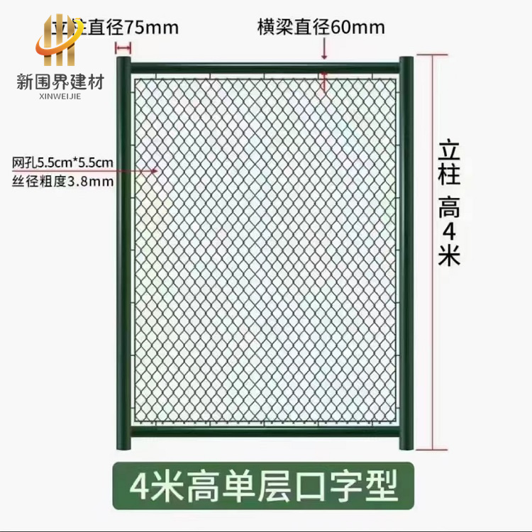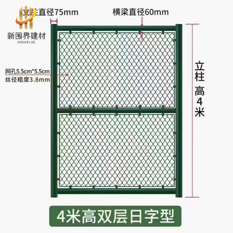 球場圍欄網(wǎng)的基本信息,從整體結(jié)構(gòu)上分為單層的口字型、雙層的日字型。常見的高度為3米、4米高。立柱直徑為60mm、75mm。橫梁直徑為48mm、60mm。絲徑為3.8mm。網(wǎng)孔為55*55mm。