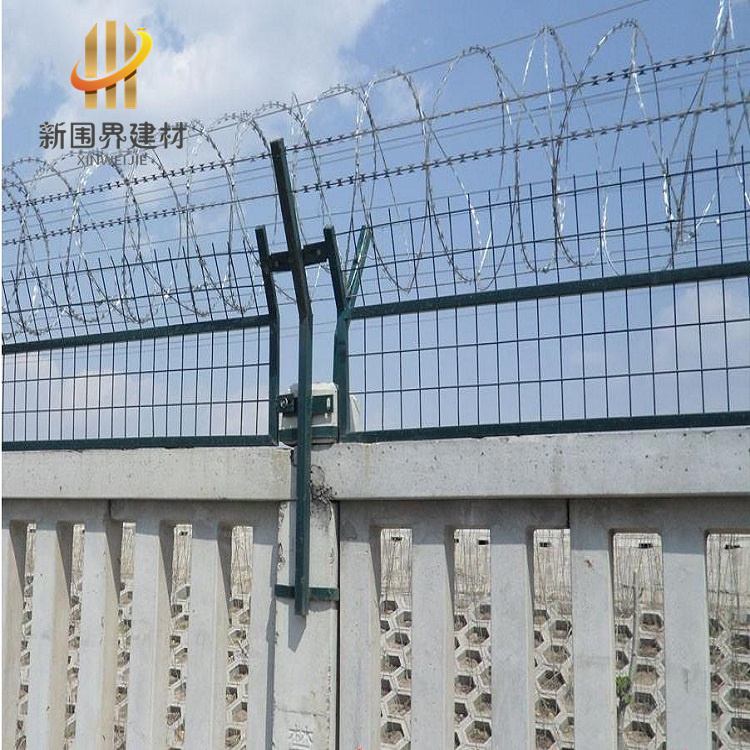 鐵路防護柵欄、高鐵防護欄主要組成:鋼筋混凝土立柱金屬網片防護柵欄由:鋼筋混凝土立柱、金屬網片及連接部件組成,防護高度1.8m。