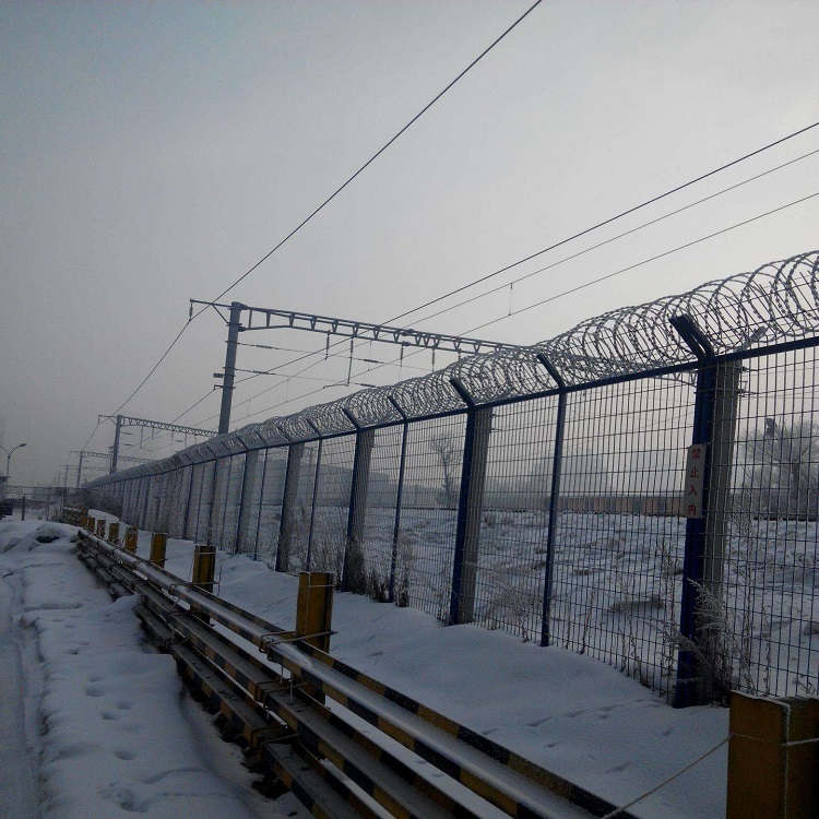 高鐵刺絲滾籠,帶刺防護(hù)柵欄,水泥柵欄刺絲滾籠,是由沖切鋼板采用機(jī)械壓軋?jiān)阡摻z上成型,鋒利的刀型刺由雙線扣裝后成蛇腹?fàn)?,刺絲滾籠安裝固定在護(hù)欄網(wǎng)上,起到了很好的隔離和嚇阻作用。