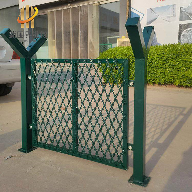 隔離網(wǎng)原材料主要采用高強(qiáng)度低碳鋼絲焊接成型,上部加Y型固定支架。由焊接鋼網(wǎng)結(jié)合刀片刺網(wǎng)組合而成。刀片刺網(wǎng)主要是由熱鍍鋅鋼板或不銹鋼薄板沖壓而成的,它擁有尖銳的刀片,高張力鍍鋅鋼絲或者不銹鋼絲做芯線組合而成的產(chǎn)品。