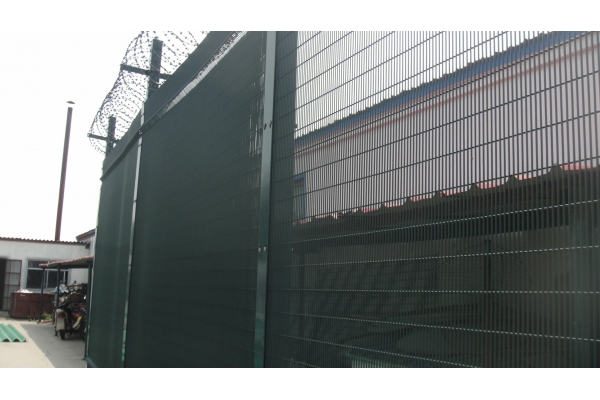 高安全防護網中,常用的有一種密紋網,也叫防爬網,是一種特殊結構的網片,網孔比較小,橫絲或者豎絲間隙很小,一般間隔為30mm以內,能有效防止攀爬和絲鉗的破壞。