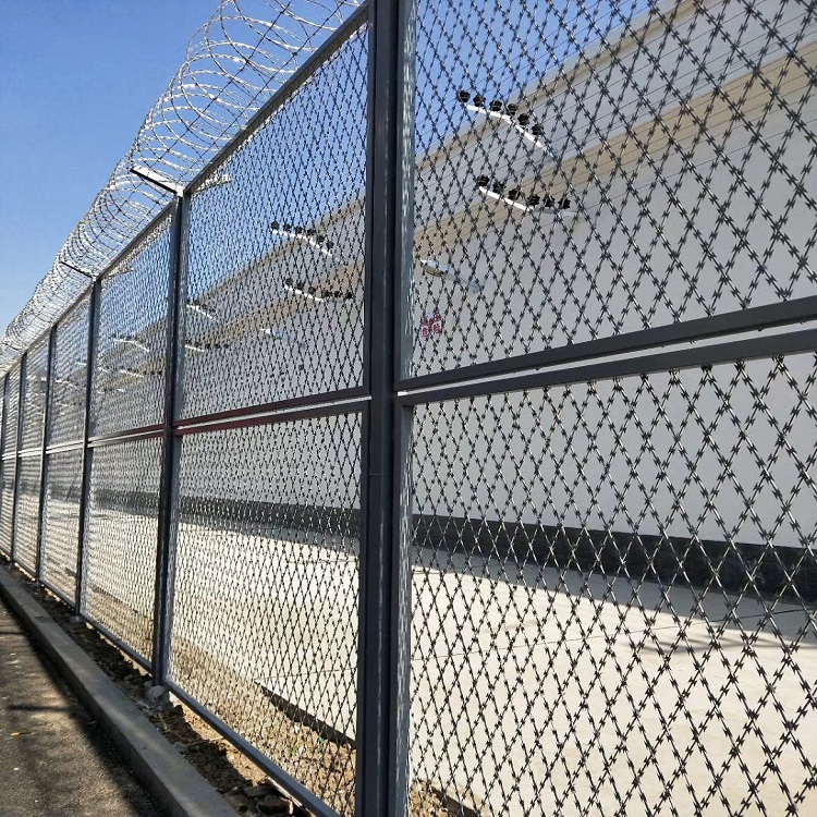 另一種常見的高安全防護網,是焊接刀片刺網,也叫直線型刀片刺網,經常與刺絲滾籠配合使用,增強防護性能??蓱糜谲娛?、機場、部隊、監獄、發電廠、市政、輕軌、城際列車等的隔離防護。
