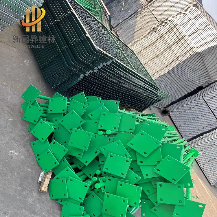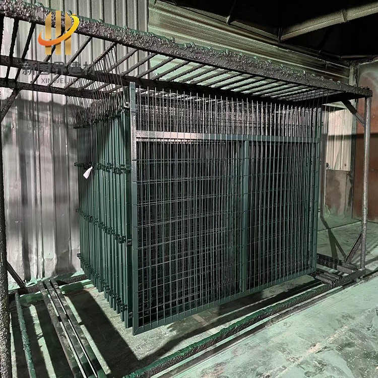 金屬網片網絲采用HPB300直徑6.5mm高線鋼絲冷拔加工,上部向外折角30°焊接成型后整體鍍鋅并進行熱浸塑處理。鍍鋅量270g/㎡,浸塑厚度0.8mm-1.2mm。