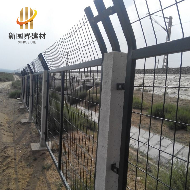 鋼筋混凝土立柱金屬網片防護柵欄由立柱、網片及金屬連接部件組成,防護高度1.8米。
