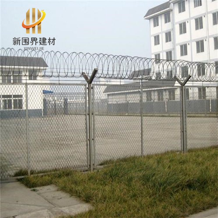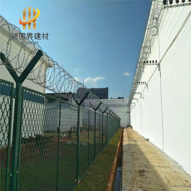 確保監管安全是警戒工作永恒的話題,也是我們一直追求的目標,因為只有保證了監管安全,我們才能有更多的精力去抓好教育,搞好生產,才能進一步監管人員的改造質量。鋼絲網設施鋼網圍墻加高網材質采用Q235鋼材制作而成,該材質具有韌性大,硬度高的特點,是制作防御隔離網的上等選材。鋼絲網圍墻加高網的編織特點具有結構新穎、堅固緊密、網面平整、網孔均勻、防攀爬、防拆卸、防剪、抗腐蝕性強等特點。顏色可根據各監區的制作要求定制,常規顏色有草綠色、墨綠色、白色、灰色,監獄鋼網墻一般頂端都設有V型支架與立柱焊接。材料通常選擇和立柱同等材料或者稍小規格材料搭配使用。V型支架的加裝是為了將蛇腹形刀刺網固定在隔離網頂部,從而有效的增加監區隔離網的防攀爬性和安全性。