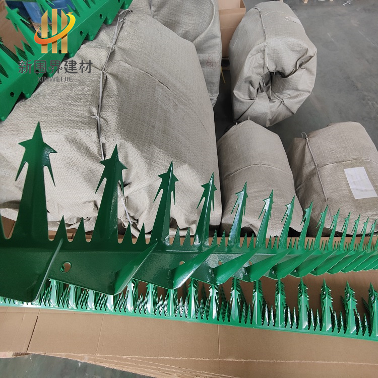 規(guī)格:材質(zhì):0.8-2mm厚的低碳鋼板,不銹鋼板。不銹鋼刺釘,鍍鋅刺釘(常用的一種材質(zhì))。防腐方式:熱鍍鋅、噴塑。刺長:80mm- 120 mm。基本長度:1.25m、1.5m、1.8m。顏色:默認(rèn)(原色為鍍鋅色),其他顏色可定做。