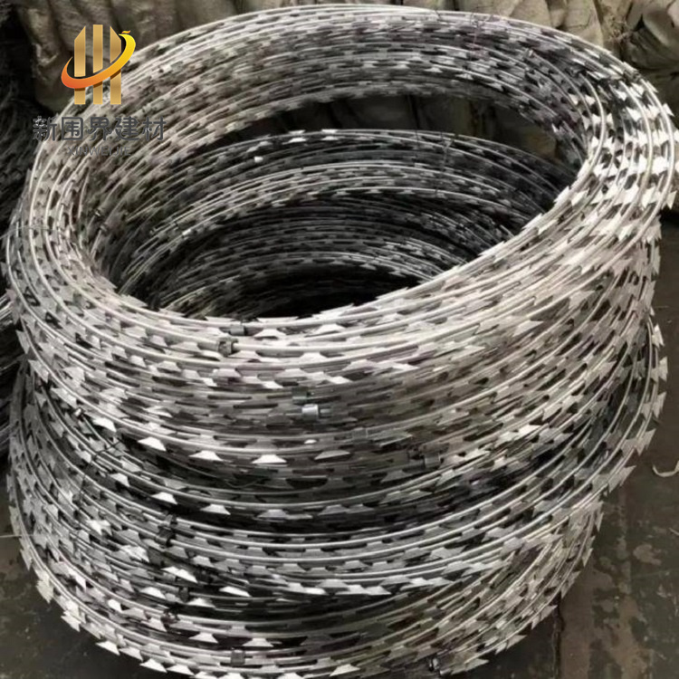 部隊(duì)圍墻刀片網(wǎng)、304不銹鋼刀片刺繩、雙螺旋刀刺網(wǎng)