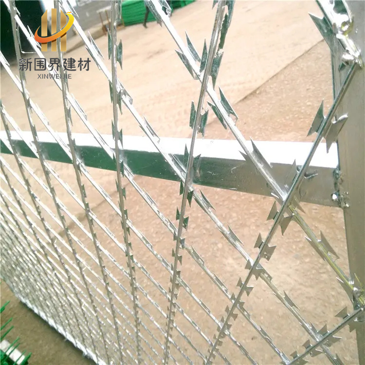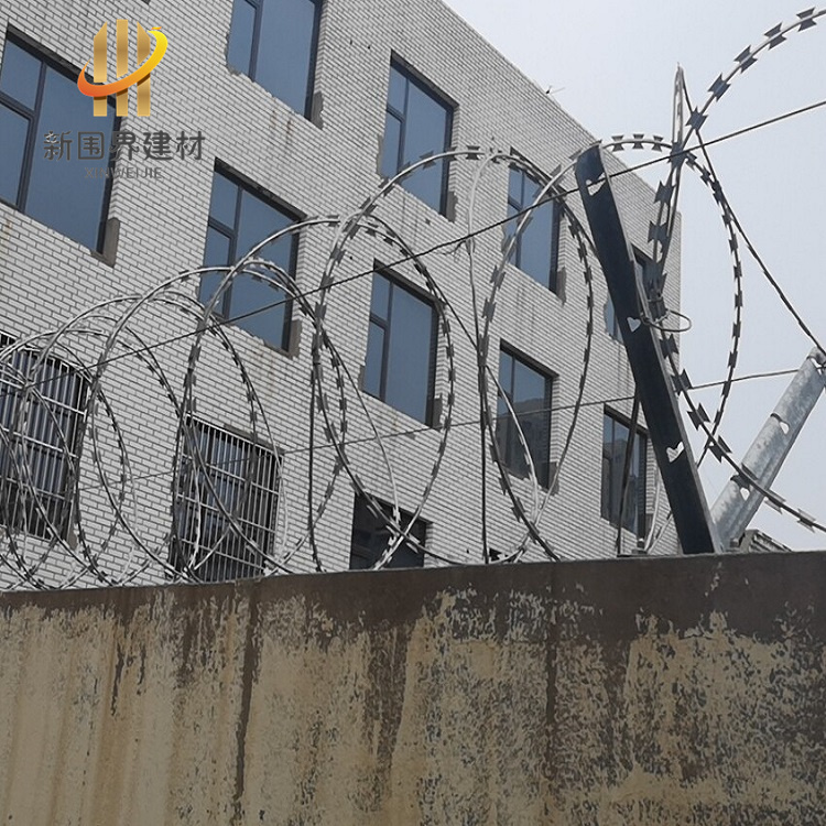 滾刀刺網(wǎng)可以用于防護(hù)圍網(wǎng),刀片刺線可以防止外人翻越圍墻,并可以修補(bǔ)切斷刀片安裝在墻頂,這種設(shè)計(jì)可以防止人爬墻,翻越。鐵線和刀片均采用鍍鋅材質(zhì),耐腐蝕性比較強(qiáng)。