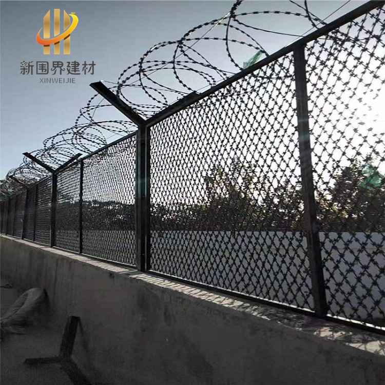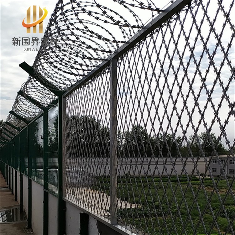 監(jiān)獄隔離網(wǎng)由網(wǎng)片,立柱,刀刺網(wǎng)組合而成,監(jiān)獄隔離網(wǎng)網(wǎng)片通常四周焊接邊框以增加整體的剛度和防護(hù)力度。