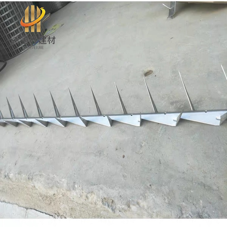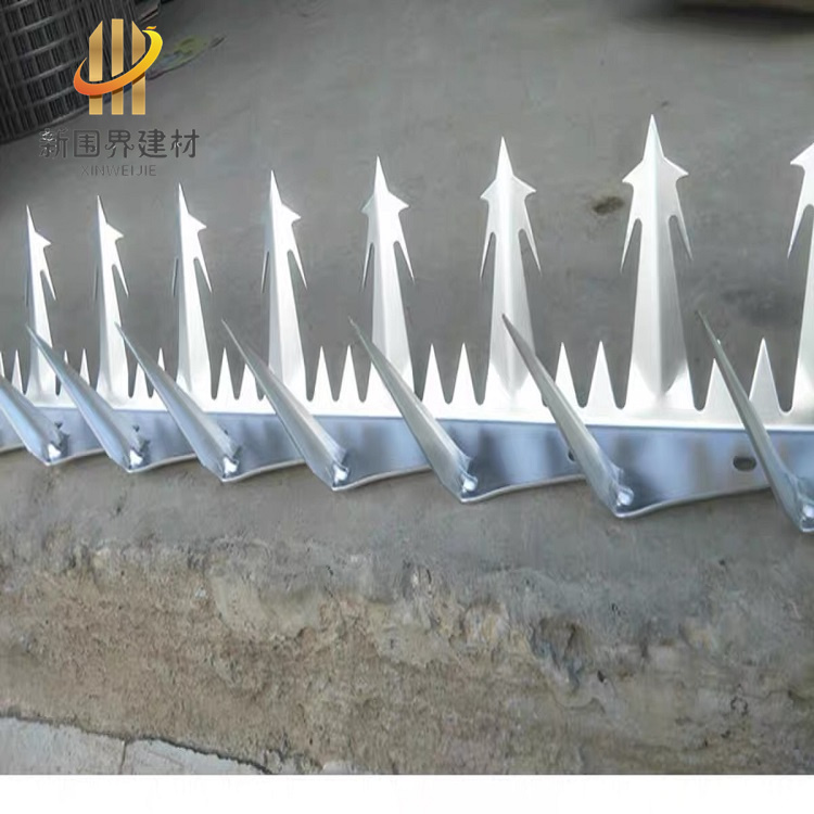 刺釘折彎處采用加強筋設計,提高了刺釘的曲服強度,不易倒不易折斷;鋼板一體成型,特殊模具一體沖壓而成,刺尖鋒利,外觀美觀,彎度精確,強度高,防護系數高;節省人工,采用膨脹螺絲或者自攻螺絲固定,安裝便利,節省大批安裝費用;超長防銹,采用熱鍍鋅鋼板、浸塑鋼板、不銹鋼鋼板等防銹材質,材料真實,防腐防銹。
