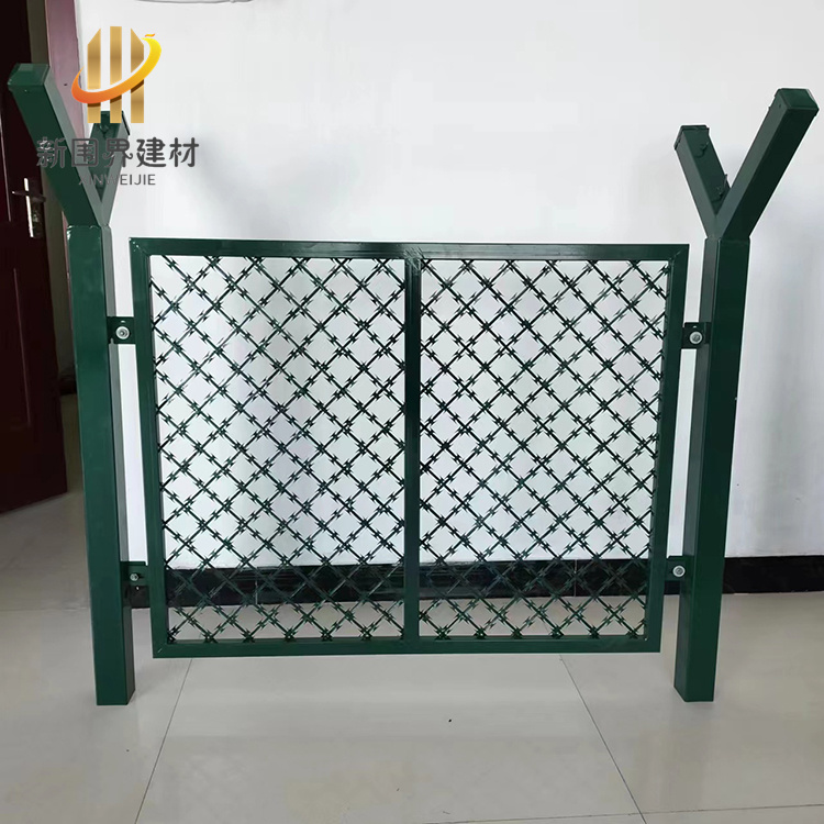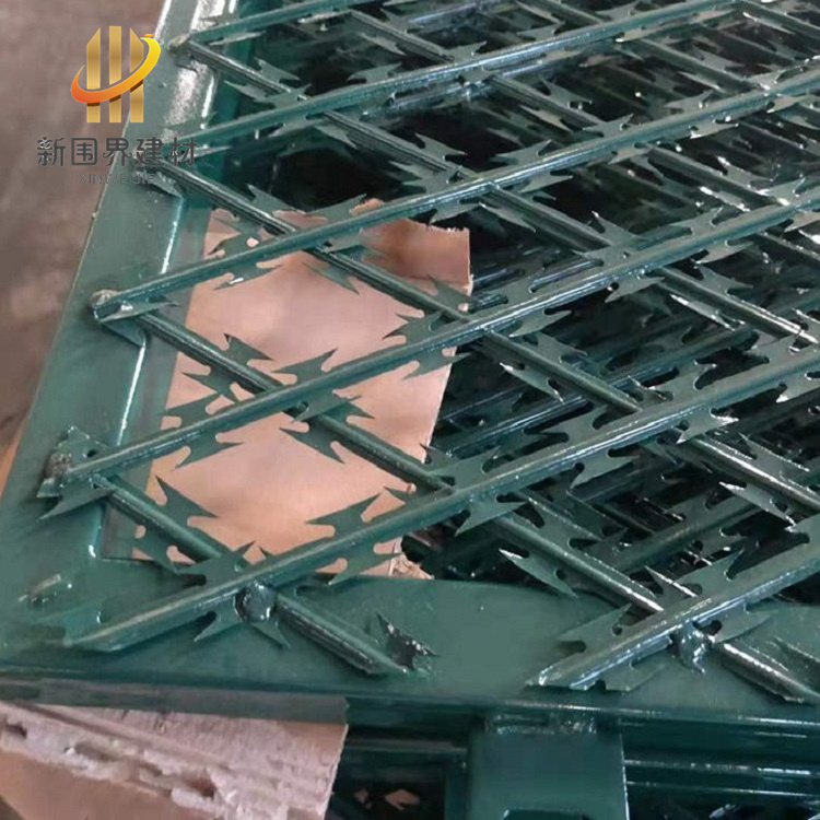 Y型柱帶刺刀片刺網圍欄、菱形孔焊接刀片刺繩、監區鋼網墻