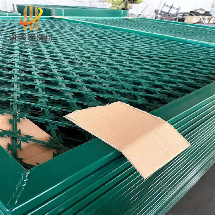 一般常見規格為:刀片刺繩焊接成菱形孔,網孔為50*100mm或者75*150mm,邊框采用20*30mm矩形管,立柱采用50*50或者60*60矩形方管焊接而成,上面裝有刀片刺網(刺絲滾籠),蛇腹型刀片刺繩具有阻嚇防觸碰的效果,材質堅硬、高張力、高強度、不易觸摸等能達到極好的隔離效果。外形尺寸一般有2.5米高*2米/2.5*2.5米/2.5*3米/3*3米等。