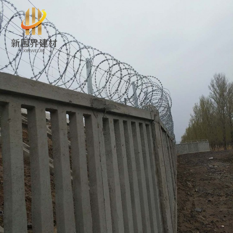 鐵路線路防護柵欄一改往日焊接鋼絲網(wǎng)柵欄、刺絲網(wǎng)柵欄等產(chǎn)品,改為防御性更強、壽命更長久的:鋼筋混凝土柵欄+0.5米高刺絲滾籠的金屬防護柵欄。