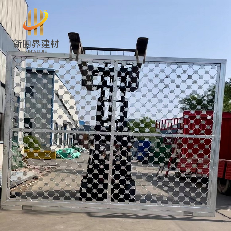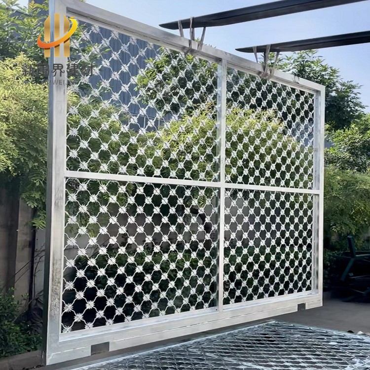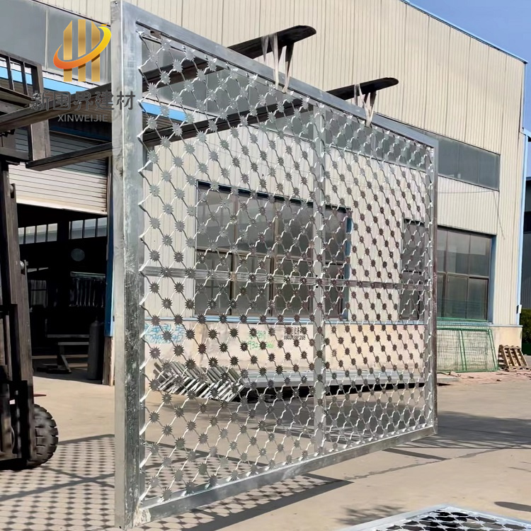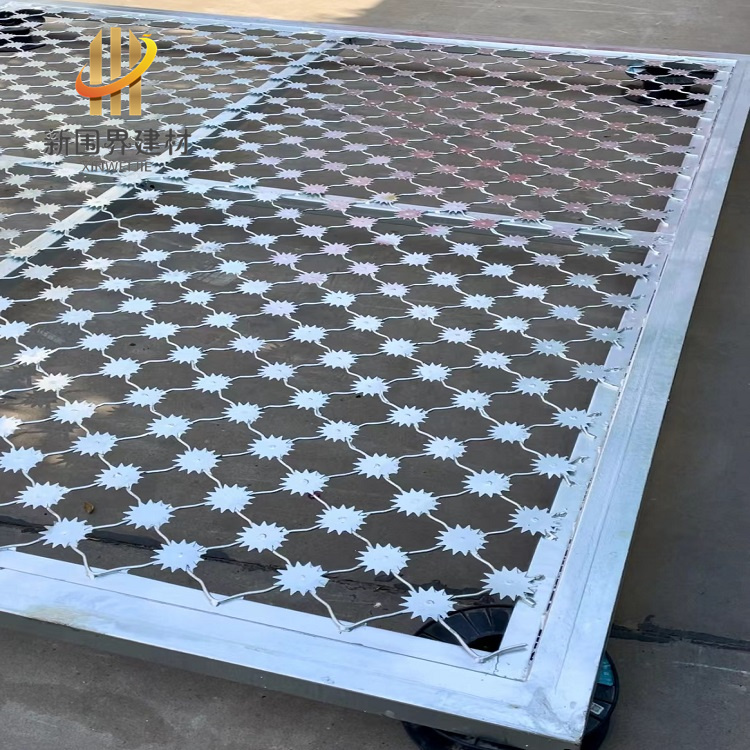 特點為堅固牢靠、防止攀爬等。梅花剌片隔離網一般用于監獄大門,探監門,人員通道兩邊的隔離網,由于其成本造價高,所以還沒有廣泛替代焊接式隔離網。具有嚇阻、防翻越等效果材質堅硬高強度張力, 造型設計獨特,不宜觸摸因而能達到極好的防護隔離效果監獄鋼網墻還具有施工簡便經濟實用等優點,專用于監獄、看守所、哨所、邊防、圍禁區域、軍事防御防護等危險地區的防護。
