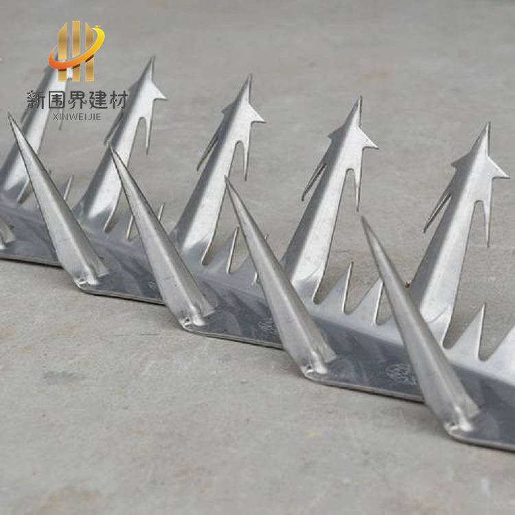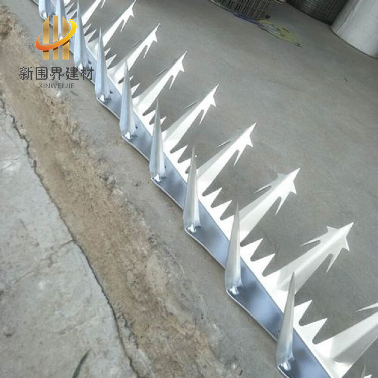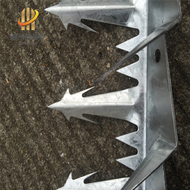 防爬刺釘是經特殊模具一次沖壓而成,邊緣平滑,沒有毛刺,尖刺鋒利,美觀大方的一種建筑物防盜裝置。