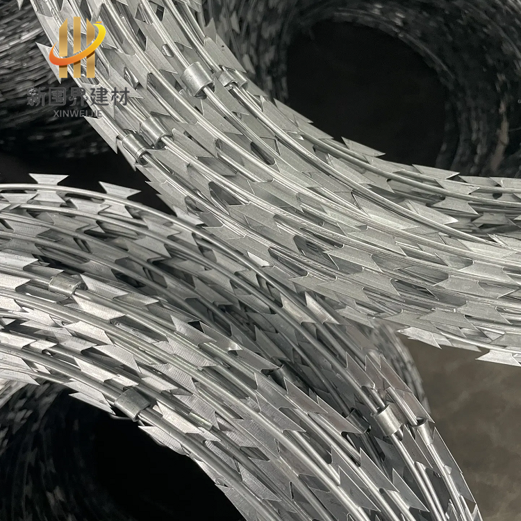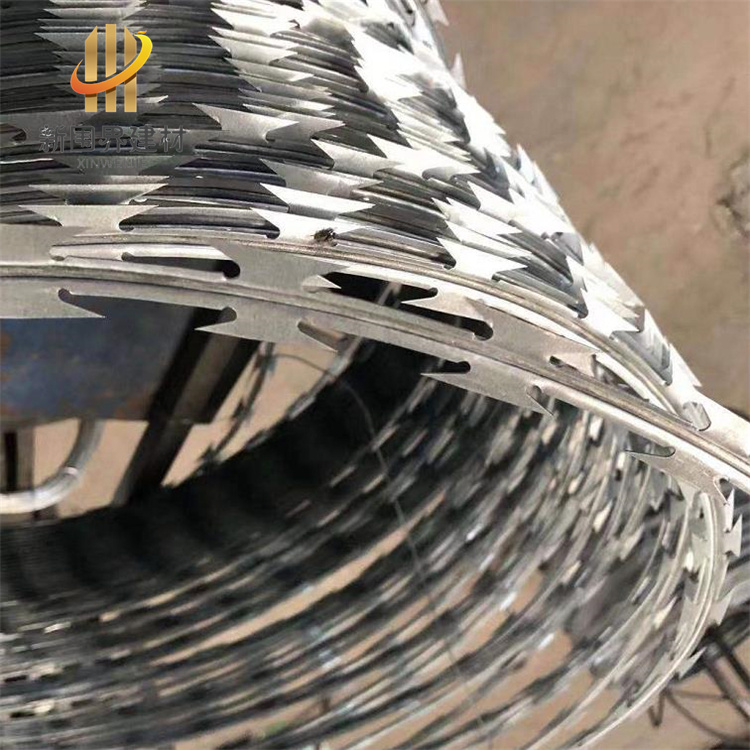 刀片刺網由熱鍍鋅鋼板或不銹鋼薄板沖壓出尖銳的刀片狀,由于刺網造形獨特不易觸摸,因而能達到很好的防護隔離效果。產品的主要材質有熱鍍鋅板和不銹鋼板,熱鍍鋅鋼絲和不銹鋼絲。
