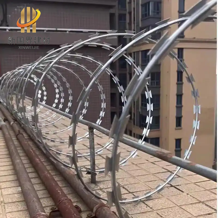 是采用帶刺鐵絲或蛇腹形帶刀片線圈的形式安裝在圍墻或圍欄上,是一種用鋒利的刀刺和高張力鋼絲制作的現(xiàn)代安全圍欄材料。該型產(chǎn)品是的防盜防爬和美觀的藝術(shù)集合體,設(shè)置方式有多種選擇,施工速度快,節(jié)約成本,并能達(dá)到震懾的效果。具有非常好的防攀爬、防盜的隔離防護(hù)作用。