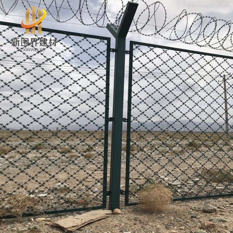 焊接菱形孔刀片刺網是用直條的刀片刺繩直接焊接而成的網片,焊接成網片的刀片刺網擁有了小孔且不可攀爬的優點,同時在防護高度上改善了傳統的螺旋形刀片刺繩,焊接成片刺網尺寸可高達2米,長度不限,現在大部分機場、監區、部隊、巡邏道、哨所、邊境線、重要廠區等高安全場所等改進了原來的隔離防護形式,越來越多的開始采用焊接式刀片刺網。