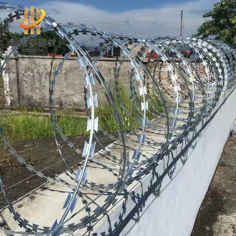 圍墻刀片刺網(wǎng)是安全與美觀的雙重選擇。圍墻刀刺網(wǎng),又稱刀片刺網(wǎng)或刮刀型刺絲,是一種新型的防護(hù)網(wǎng)產(chǎn)品,以其獨(dú)特的優(yōu)勢在各個領(lǐng)域得到廣泛應(yīng)用。