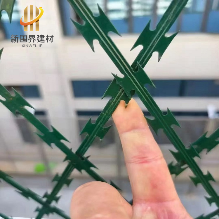 它由直條刀片刺繩經(jīng)自動化設(shè)備交叉焊接成網(wǎng)片,形成菱形孔或方形孔結(jié)構(gòu),網(wǎng)面平整、連接牢固。可定制網(wǎng)孔尺寸和邊框結(jié)構(gòu)。搭配Y型立柱,頂部加裝雙螺旋刀片刺繩,并經(jīng)表面處理構(gòu)成網(wǎng)站鋼網(wǎng)墻。能有效阻擋攀爬、切割等破壞行為,防護性能卓越、兼具威懾性和抗破壞性?。