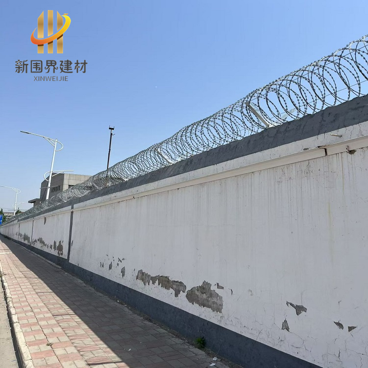 高安全區域(監獄、軍事基地):推薦螺旋式刀片刺網(蛇腹型),通過立體盤繞形成多重阻隔層,威懾性強且難以攀爬,材質優先選用304不銹鋼,耐腐蝕壽命可達10年以上;民用場景(小區、別墅):螺旋式或平板式或直線型刀片刺網均可,安裝后與圍墻頂部貼合,兼顧防護性與視覺協調性,熱鍍鋅材質性價比高,常規環境下使用壽命約5-8年;交通設施(高鐵、高速公路):搭配Y型立柱或水泥立柱的復合型刺網方案,增強整體結構穩定性,適應復雜地形。