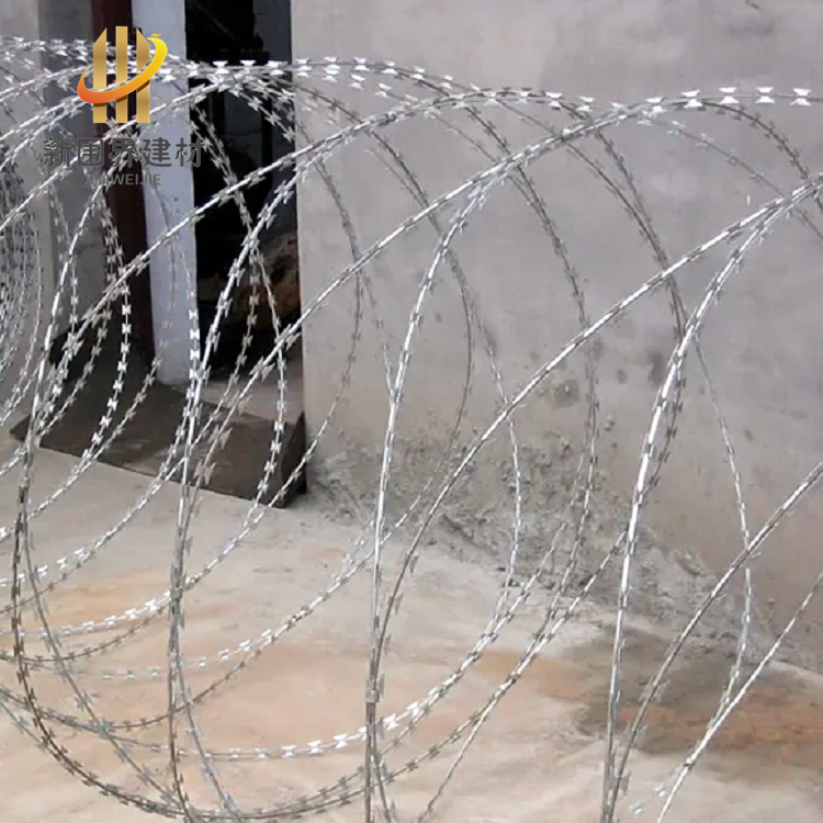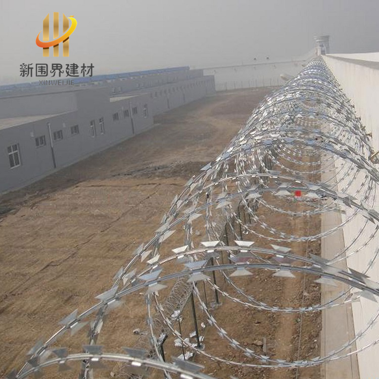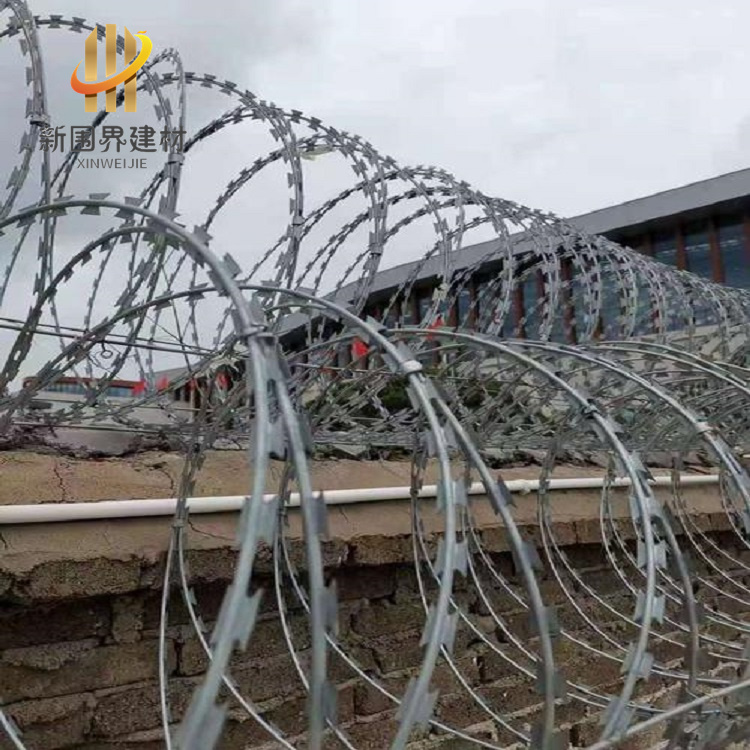 蛇腹形刀刺網是一種由熱鍍鋅鋼板或不銹鋼薄板沖壓成尖銳刀片狀,結合高張力鍍鋅鋼絲/不銹鋼絲芯線組成的防護設施 。其采用蛇腹狀擰編結構,通過雙螺旋交叉布局形成密集刀刺陣列,具有物理隔離與心理震懾雙重防護功能 。