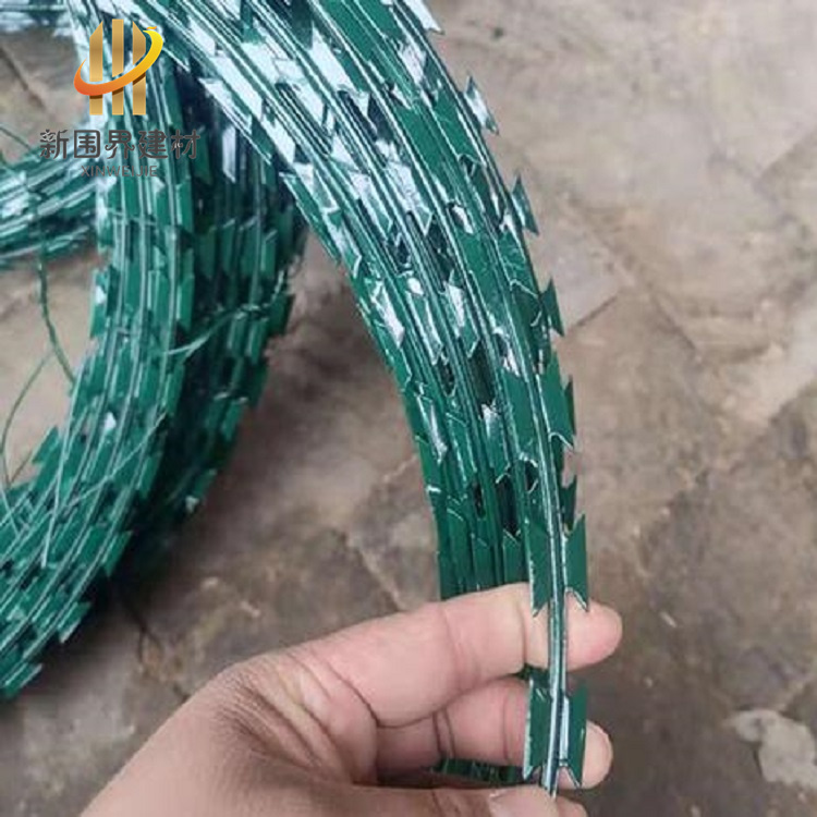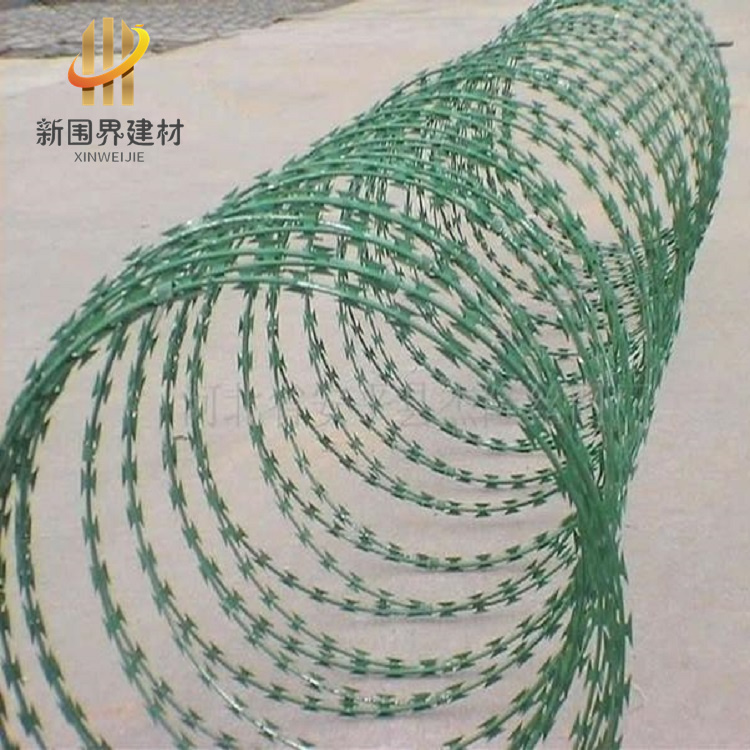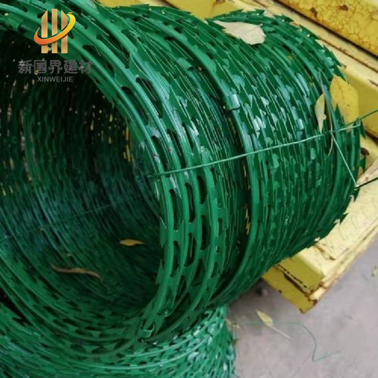 刀片刺繩生產出來以后,要進行防銹處理所產生的。噴塑表面處理使其具有相當好的防腐能力,表面光澤美觀、嚇阻效果好、施工便利,經濟實用等優異特點。