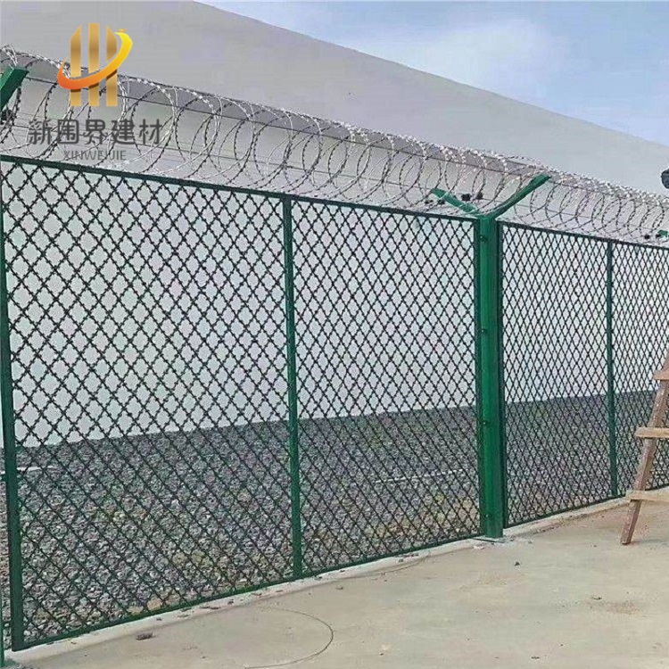 巡邏道隔離網(wǎng)主要用于隔離區(qū)域劃分和安全防護(hù),常見于監(jiān)獄、機(jī)場、軍事基地等需要安全管控的場所。 主要作用 : 安全防護(hù)?:防止人員非法進(jìn)入特定區(qū)域(如監(jiān)獄巡邏道、機(jī)場隔離區(qū)),避免安全事故。區(qū)域劃分?:通過物理隔離實(shí)現(xiàn)不同功能區(qū)的劃分,保障管理秩序。 ?防攀爬設(shè)計(jì)?:采用刀片刺網(wǎng)、Y型立柱等結(jié)構(gòu),增強(qiáng)防攀爬能力。