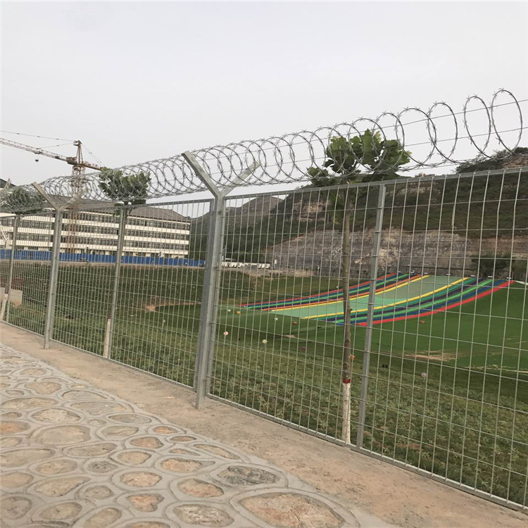 監獄鋼網墻是一種新型防護網,由銳利尖角鍍鋅鋼板或不銹鋼薄板做刀片,鋼絲做芯線組合而成的防護器材。監獄鋼網墻刀片刺網具有嚇阻、防翻越等效果,材質堅硬,高強度,高張力,造型設計獨特,不宜觸摸,因而能達到很好的防護隔離效果。