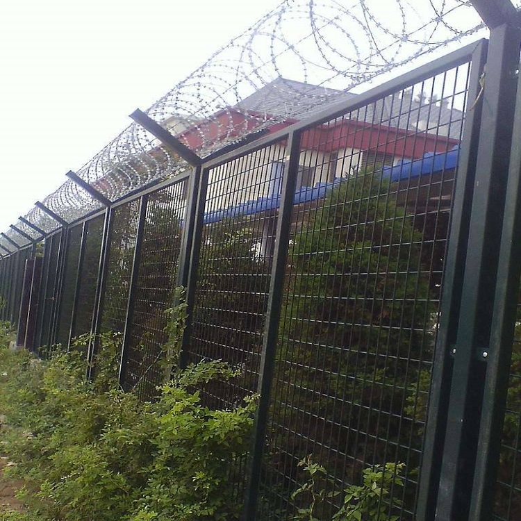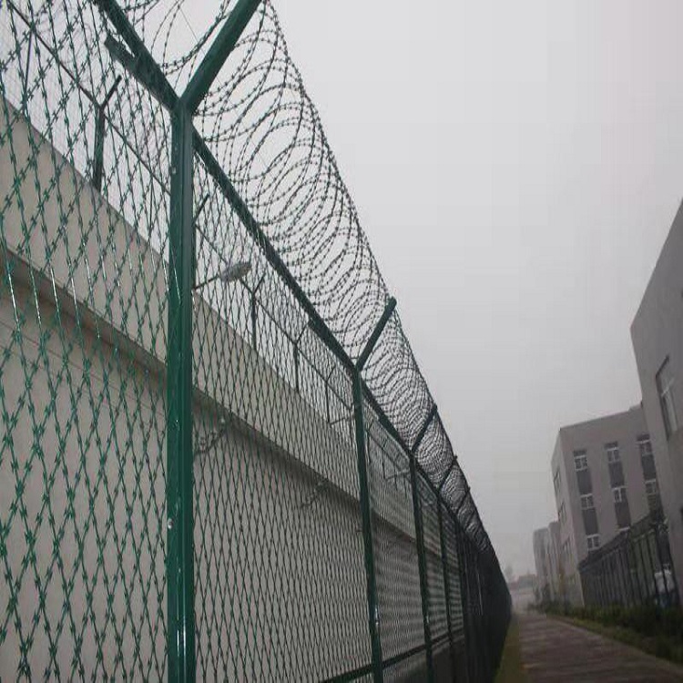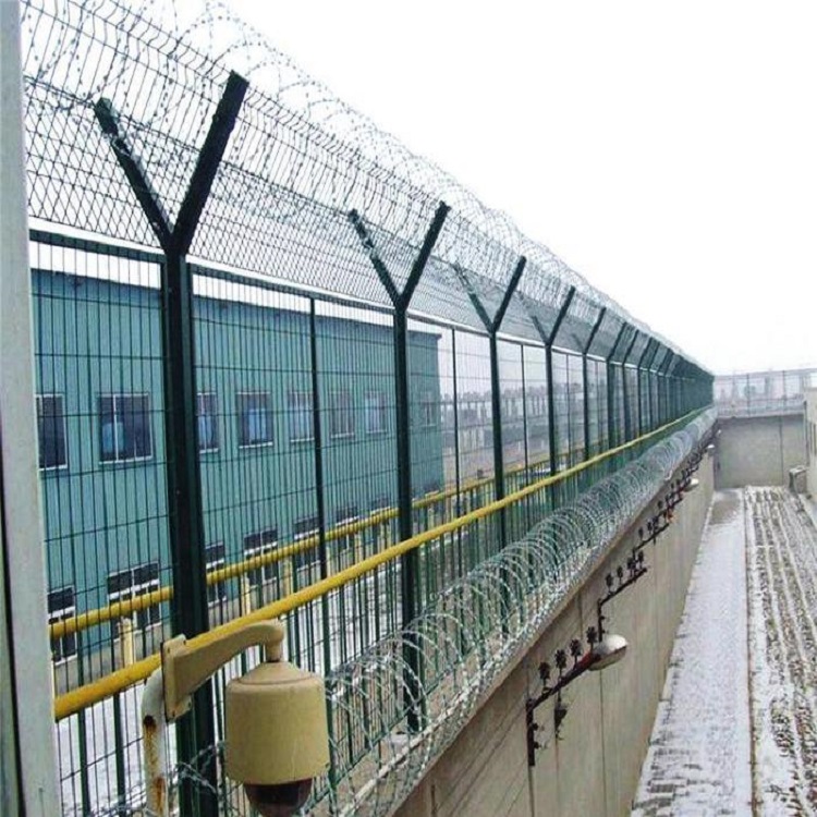 監獄加高鋼網墻@勞教所隔離護欄@ 強制隔離戒毒所鋼網墻,主要應用于監獄、看守所、哨所、邊防、軍事基地等高安全場所的加強防護隔離。