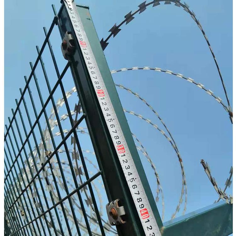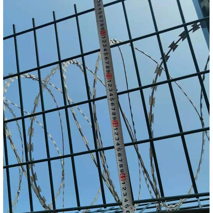 是由V型支架立拄,加強型焊接片網(wǎng),防盜連接件和熱鍍鋅刀片刺籠組成,是強度和防御性級別很高的護欄網(wǎng)產(chǎn)品。