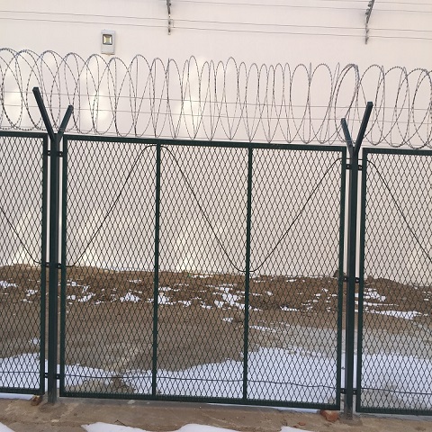 刀刺隔離網(wǎng)用在放風場、巡邏道,用來加高圍墻,都比較適用。主要應(yīng)用于監(jiān)獄、看守所、機場、核電站、軍事基地等對安全防護級別要求相對較高的場所。